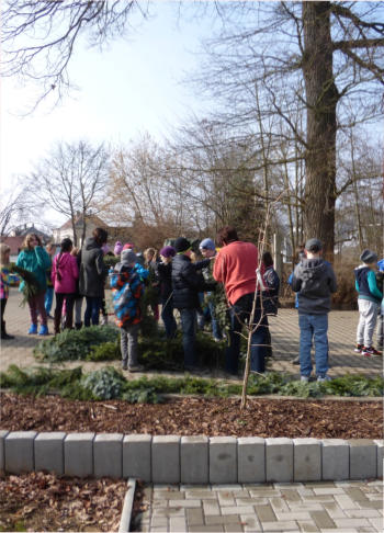 Frühjahrsputz und Gestaltung des Osterbrunnens im März 2015