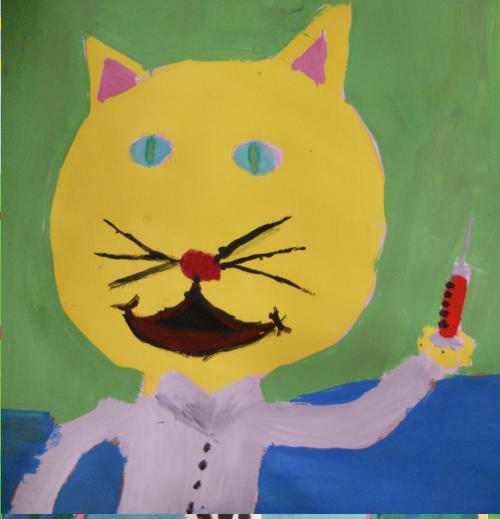 Die Klasse 3c gestaltete Katzen nach Otmar Alt