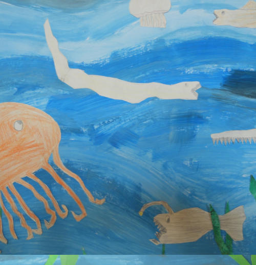 Die 3. Klassen gestalteten eine phantasievolle Unterwasserwelt.